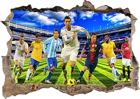 Lionel Messi Cristiano Ronaldo Manchester Spanish Real Madrid Barcelona 3d Smashed Window Wall View Sticker Poster Vinyl Mural Decal Art 776 90x65cm