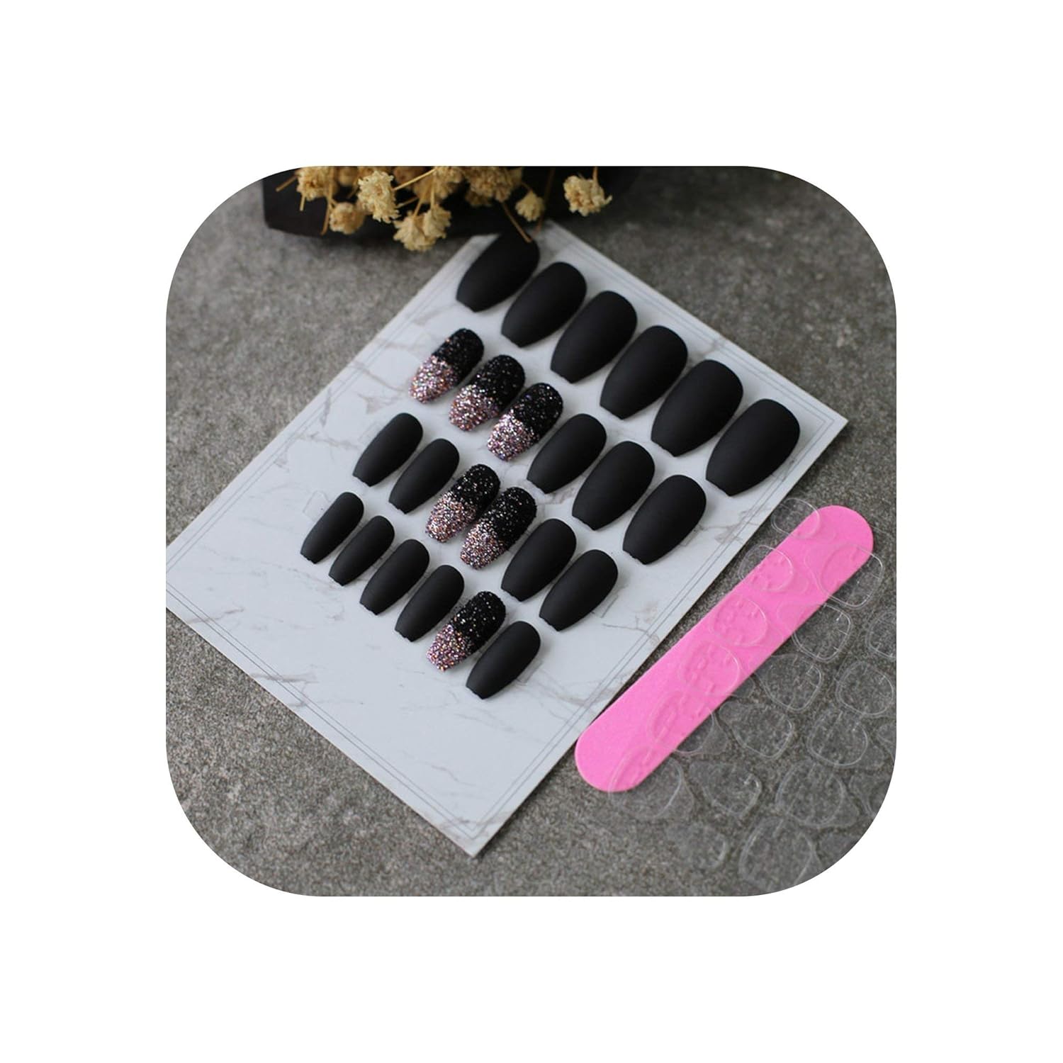 Medium Long Coffin Acrylic Nails Glitter Nails Nagel Pink Nails