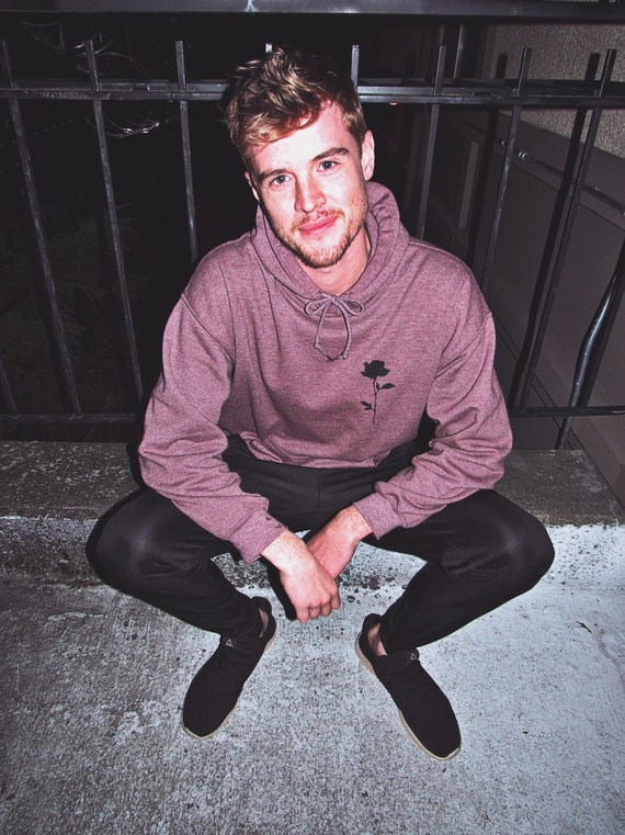 Mens Hoodie Black Rose Sweatshirt Mens Clothing Rose Hoodie Boyfriend Gift Mens Sweatshirt Hipster Sweater Grunge Clothing Aesthetic Hoodie